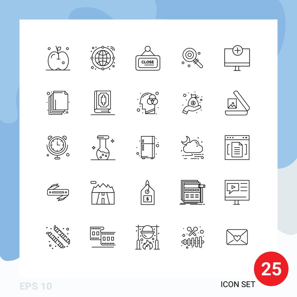 25 Universal Lines Set for Web and Mobile Applications gadget computers sign add lolly Editable Vector Design Elements