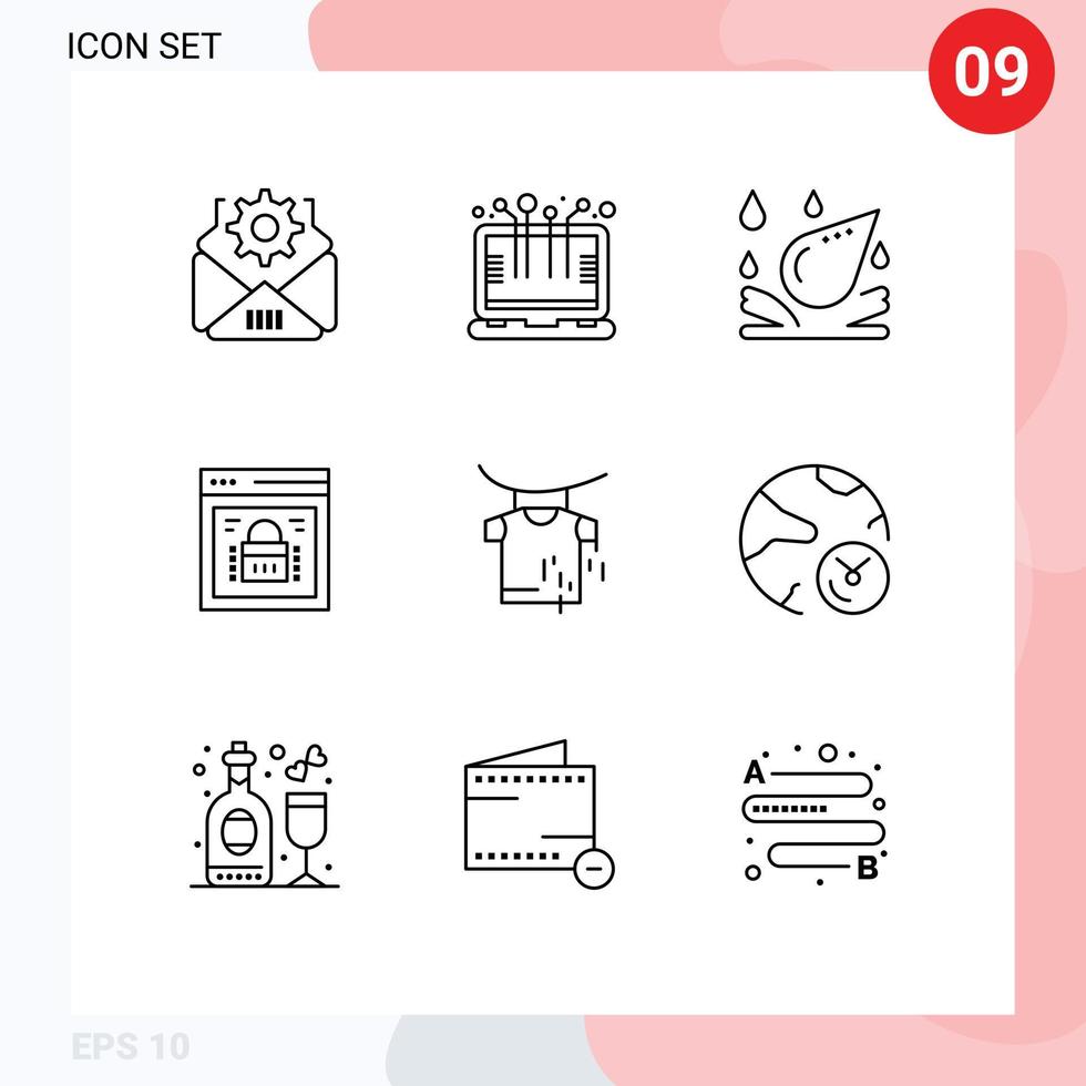 Universal Icon Symbols Group of 9 Modern Outlines of hanging clothes spa web security protected browser Editable Vector Design Elements