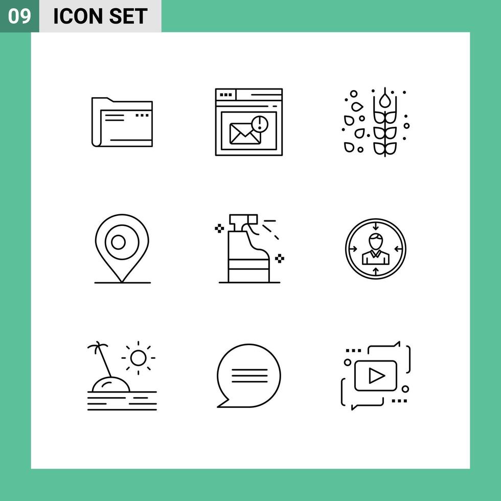 Outline Pack of 9 Universal Symbols of bangladash location inbox wheat autumn Editable Vector Design Elements Free Vector