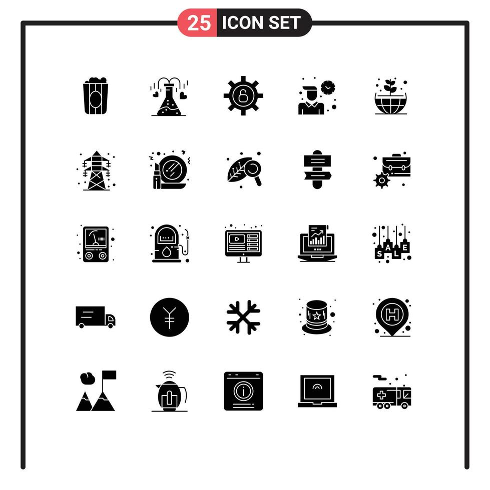 Set of 25 Vector Solid Glyphs on Grid for green earth protection working routine Editable Vector Design Elements Free Vector