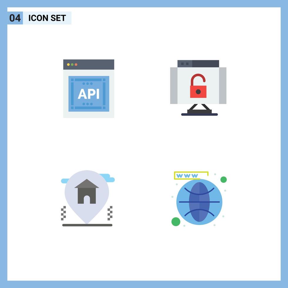 User Interface Pack of 4 Basic Flat Icons of api home software protect real estate Editable Vector Design Elements Free Vector