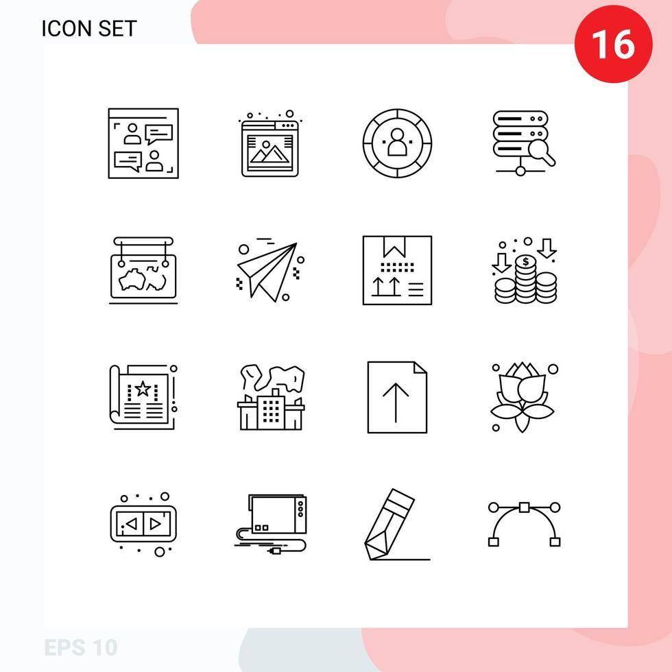 Pack of 16 Modern Outlines Signs and Symbols for Web Print Media such as map search chart server person Editable Vector Design Elements Free Vector