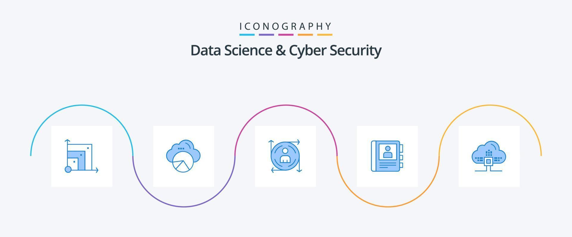 Data Science And Cyber Security Blue 5 Icon Pack Including data. info. user. diary. phone vector