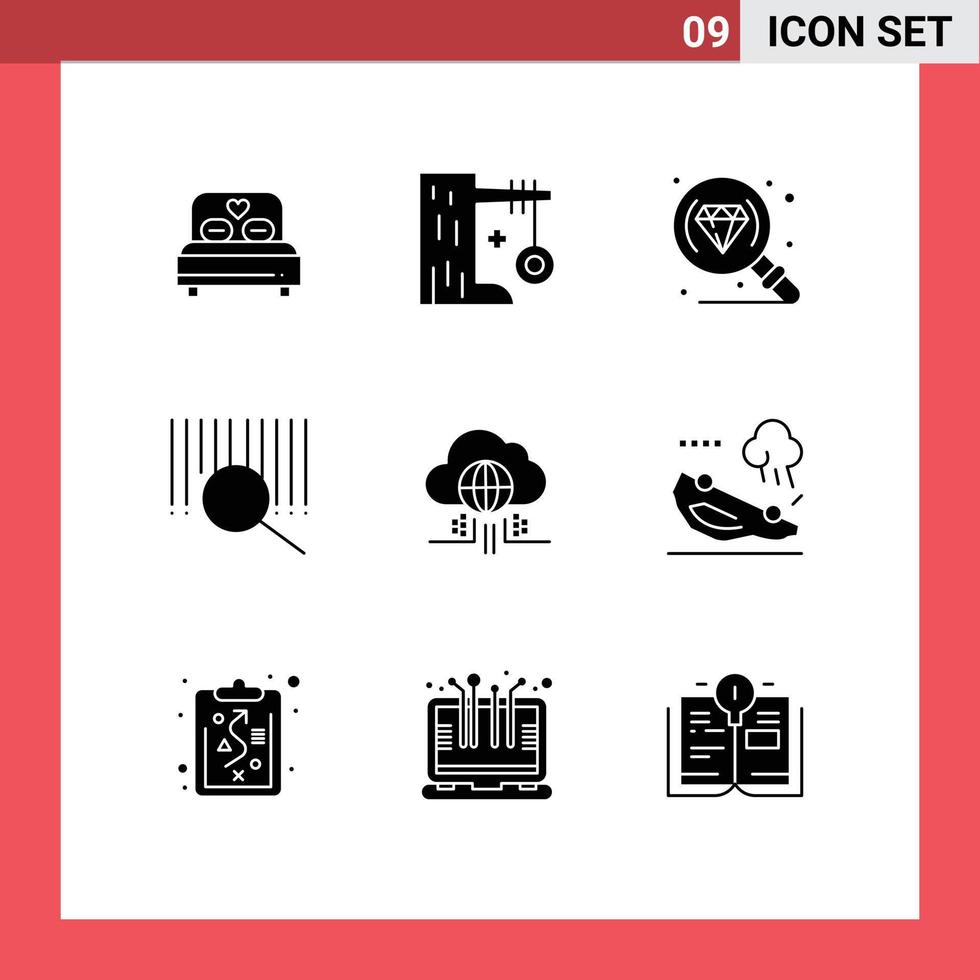 9 Solid Glyph concept for Websites Mobile and Apps cloud internet tire swing search barcode Editable Vector Design Elements Free Vector
