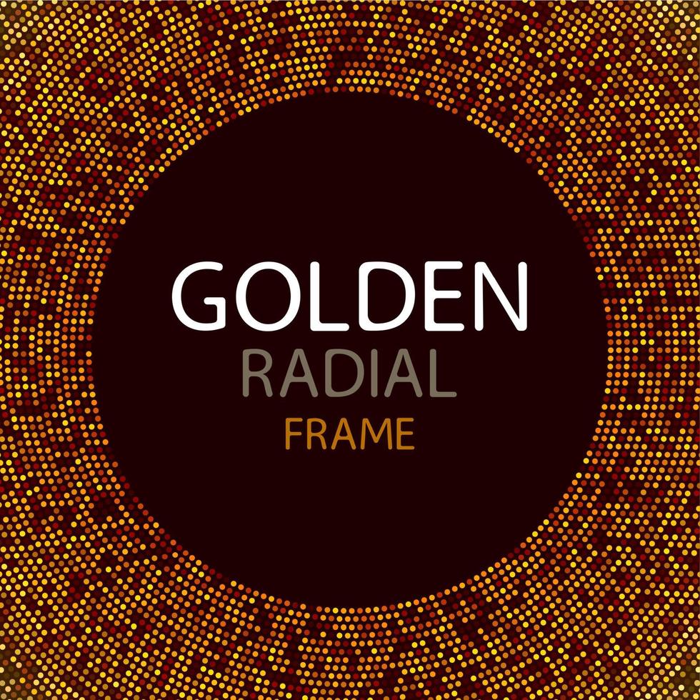 Vector gold disco lights frame or spangles round frame with empty center for text. Gold circle made of tiny uneven dots abstract background. Golden blobs textured round frame on black backdrop. Pro Vector