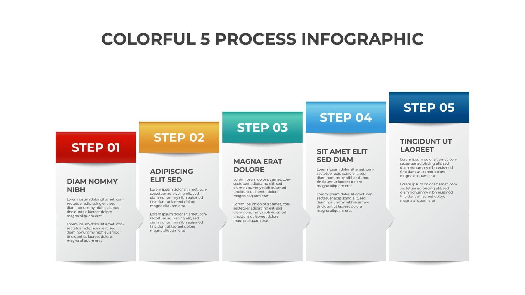 5 points of list diagram, ascending block of process layout template, infographic element vector Pro Vector
