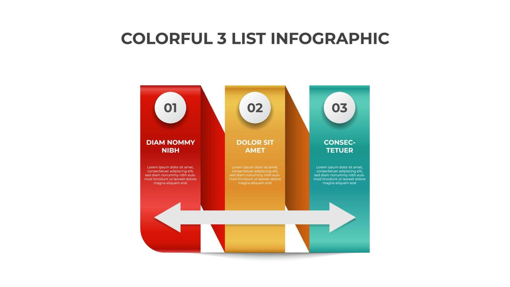 Continuous list diagram with 3 points, infographic element layout template vector Pro Vector