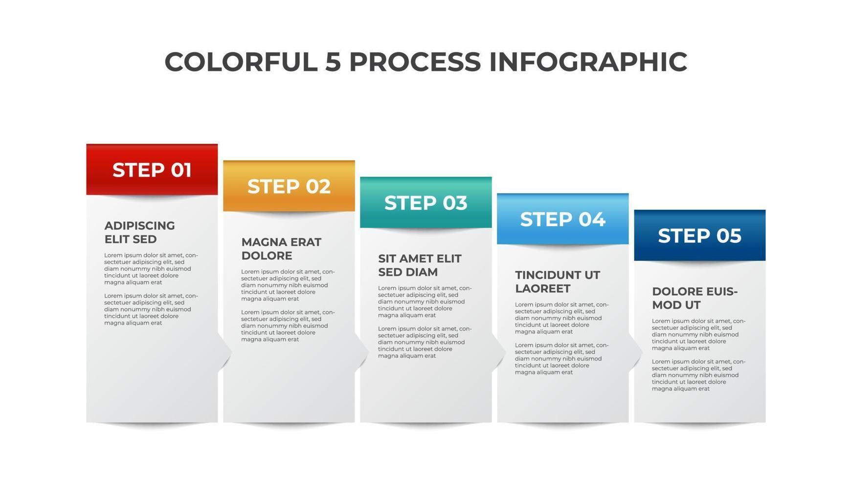 5 points of process diagram, ascending block layout, infographic element template vector Pro Vector