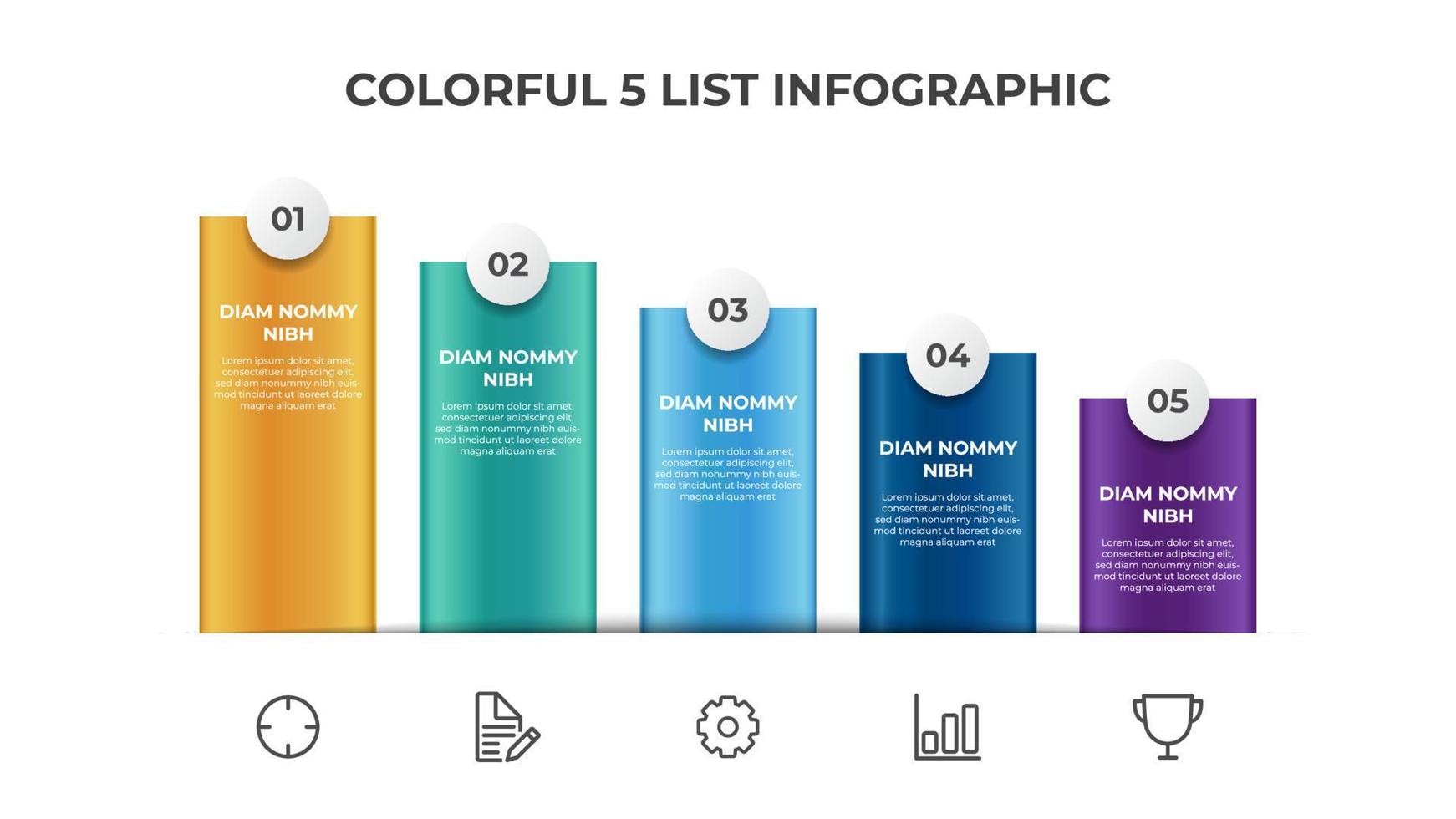 Descending list diagram with 5 points of steps, infographic element layout template vector Pro Vector