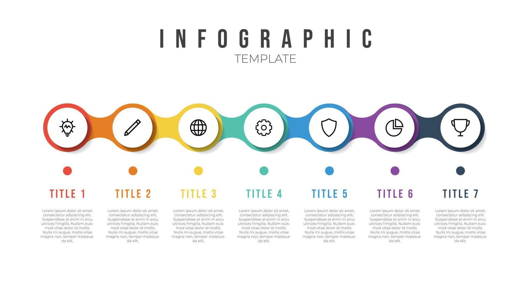 infographic list template element with horizontally 7 points and icons Pro Vector