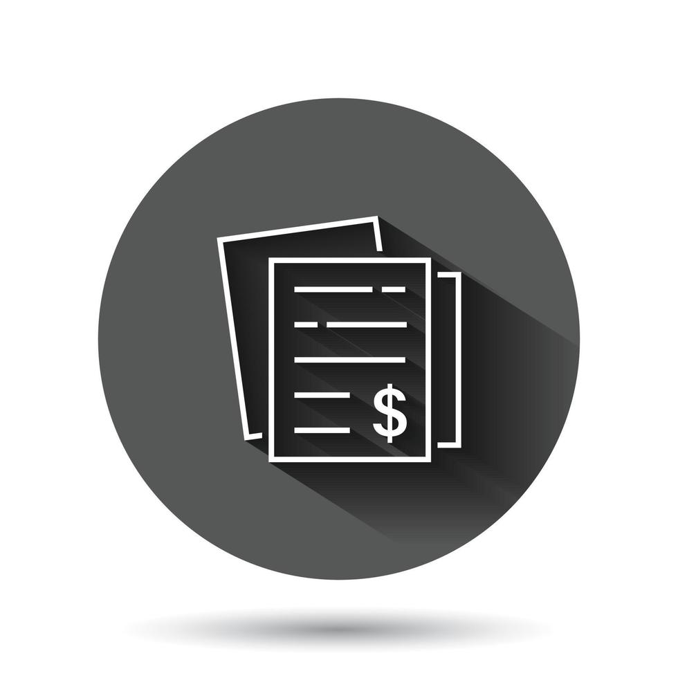 Financial statement icon in flat style. Document vector illustration on black round background with long shadow effect. Report circle button business concept. Pro Vector and Pro SVG