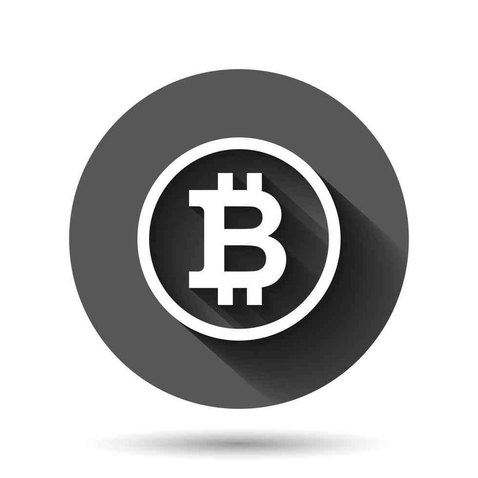 Bitcoin icon in flat style. Blockchain vector illustration on black round background with long shadow effect. Cryptocurrency circle button business concept. Pro Vector and Pro SVG
