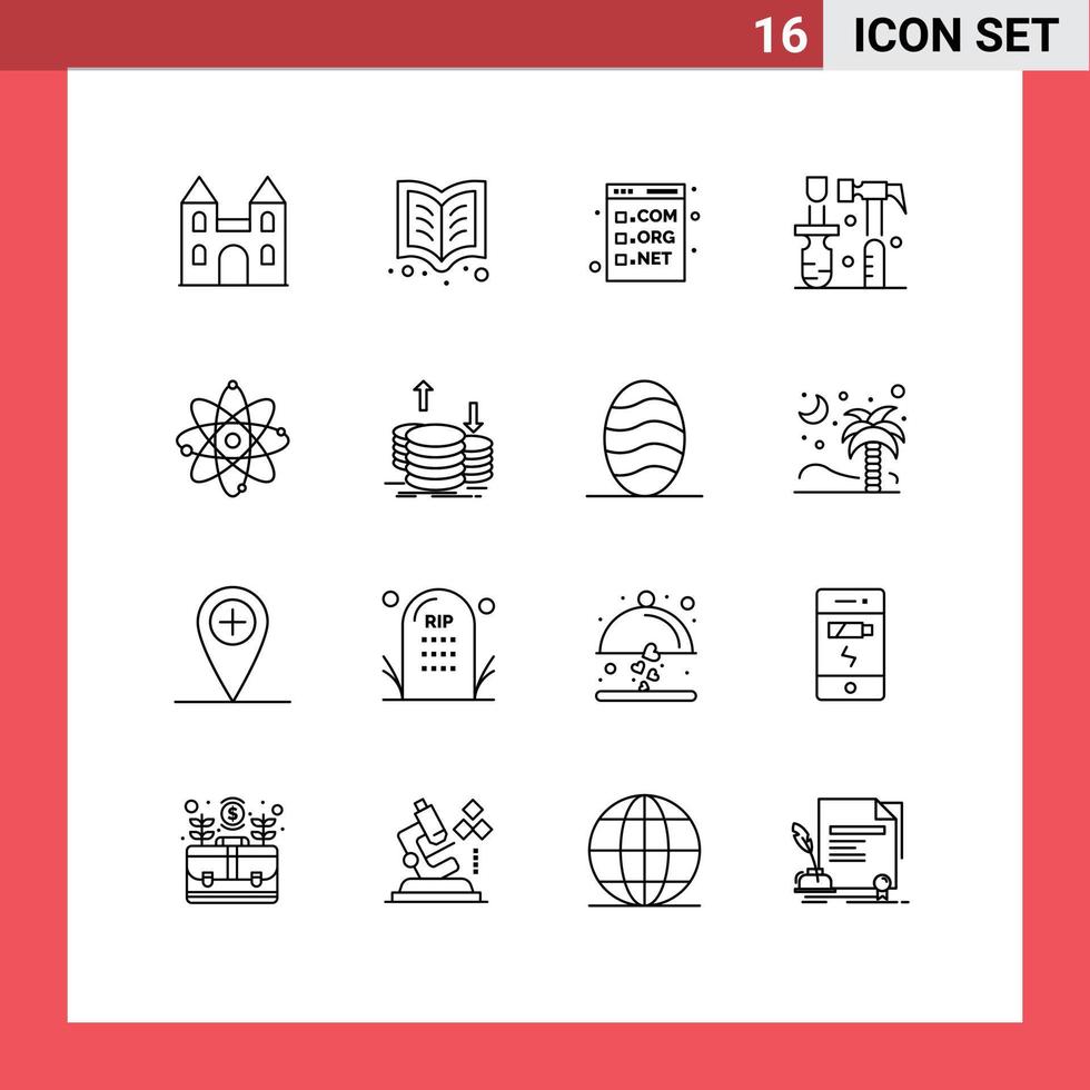 Set of 16 Commercial Outlines pack for atom screwdriver browser hammer programming Editable Vector Design Elements Free Vector