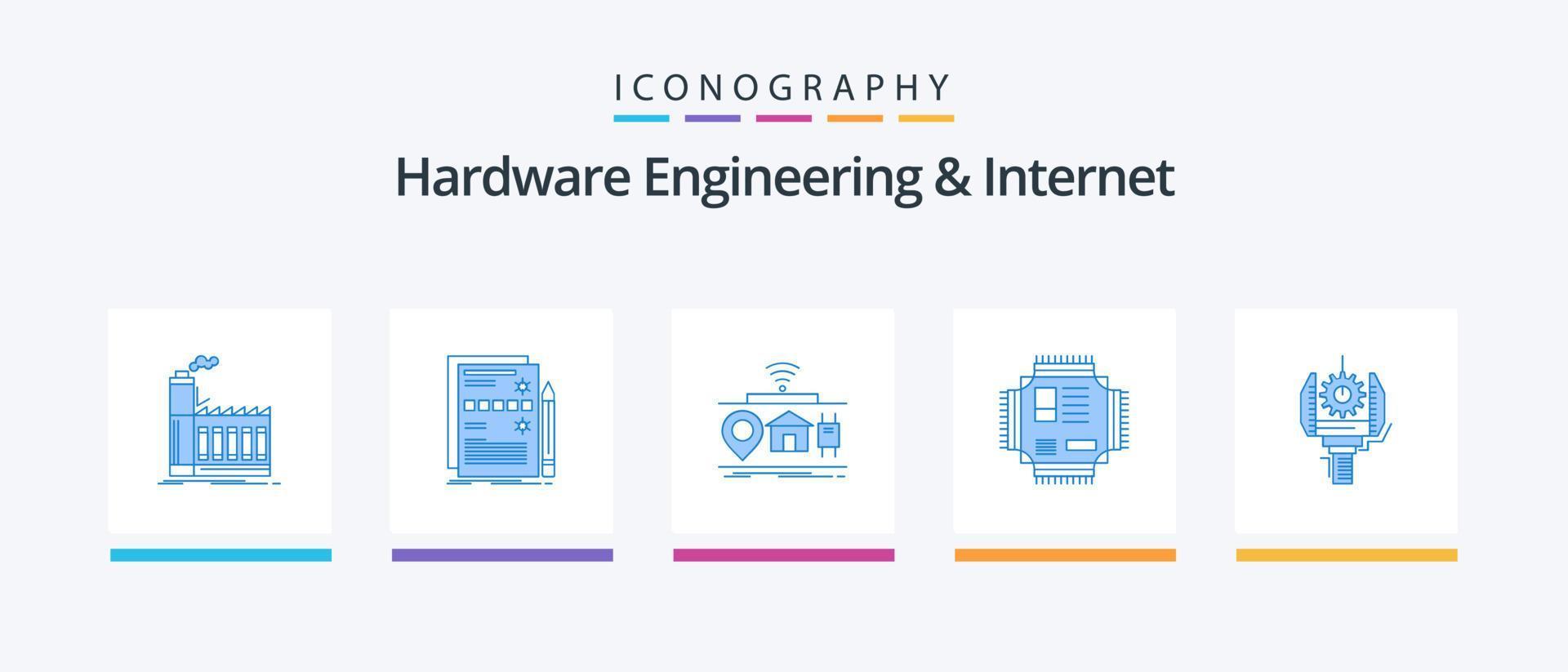 Hardware Engineering And Internet Blue 5 Icon Pack Including microchip. chip. hardware. things. internet. Creative Icons Design vector