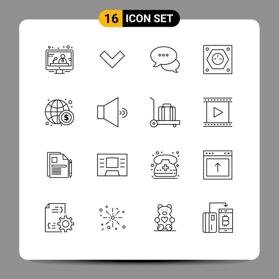 Editable Vector Line Pack of 16 Simple Outlines of finance business message socket plug Editable Vector Design Elements