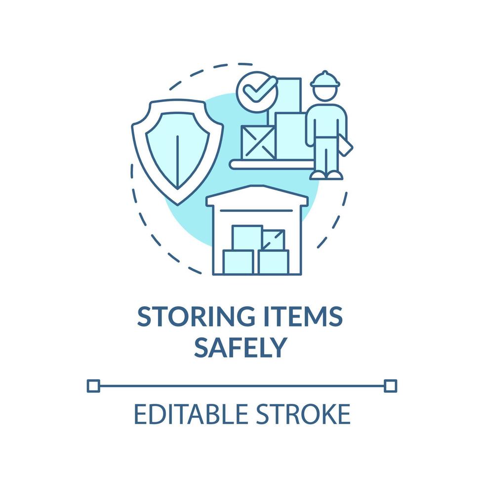 Storing items safely turquoise concept icon. Measure to avoid workplace injuries abstract idea thin line illustration. Isolated outline drawing. Editable stroke Pro Vector