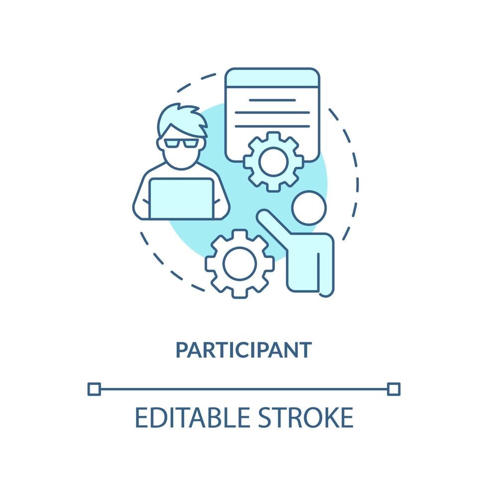 Participant turquoise concept icon. Take part in survey. Research members abstract idea thin line illustration. Isolated outline drawing. Editable stroke Pro Vector