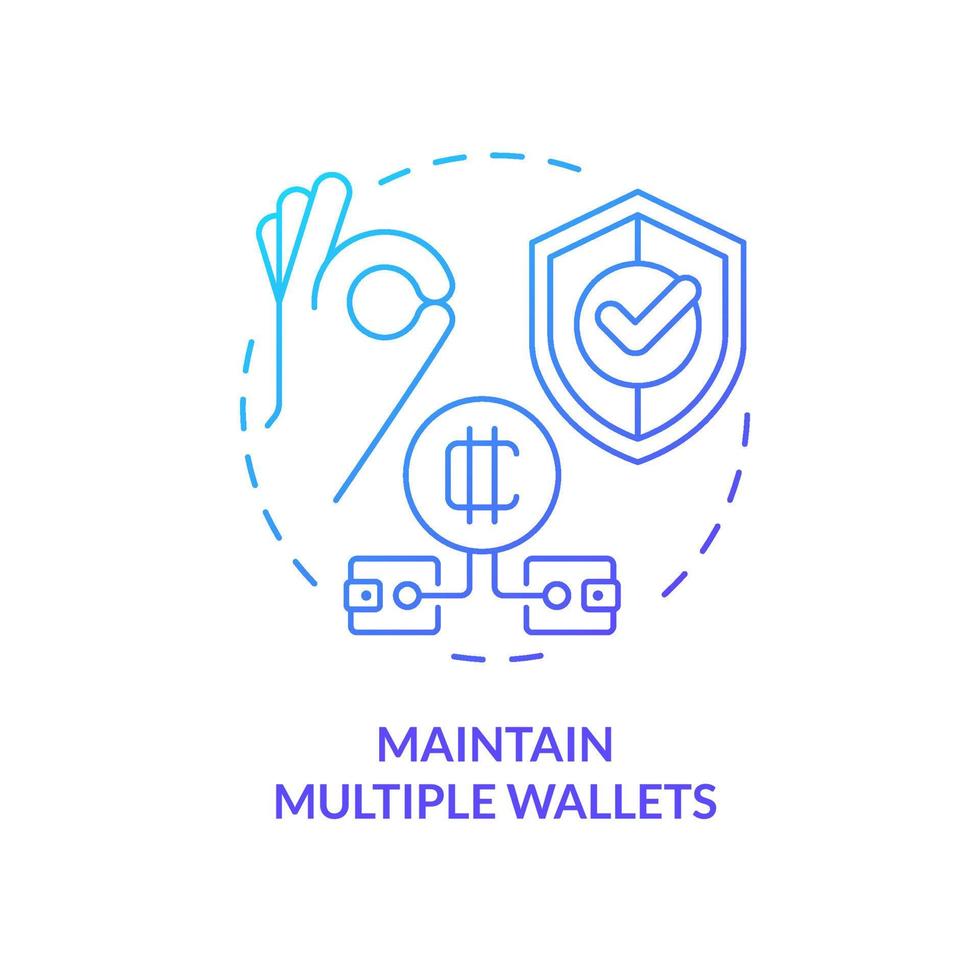 Maintain multiple wallets blue gradient concept icon. Diversified investment. Cryptosecurity abstract idea thin line illustration. Isolated outline drawing Pro Vector and Pro SVG