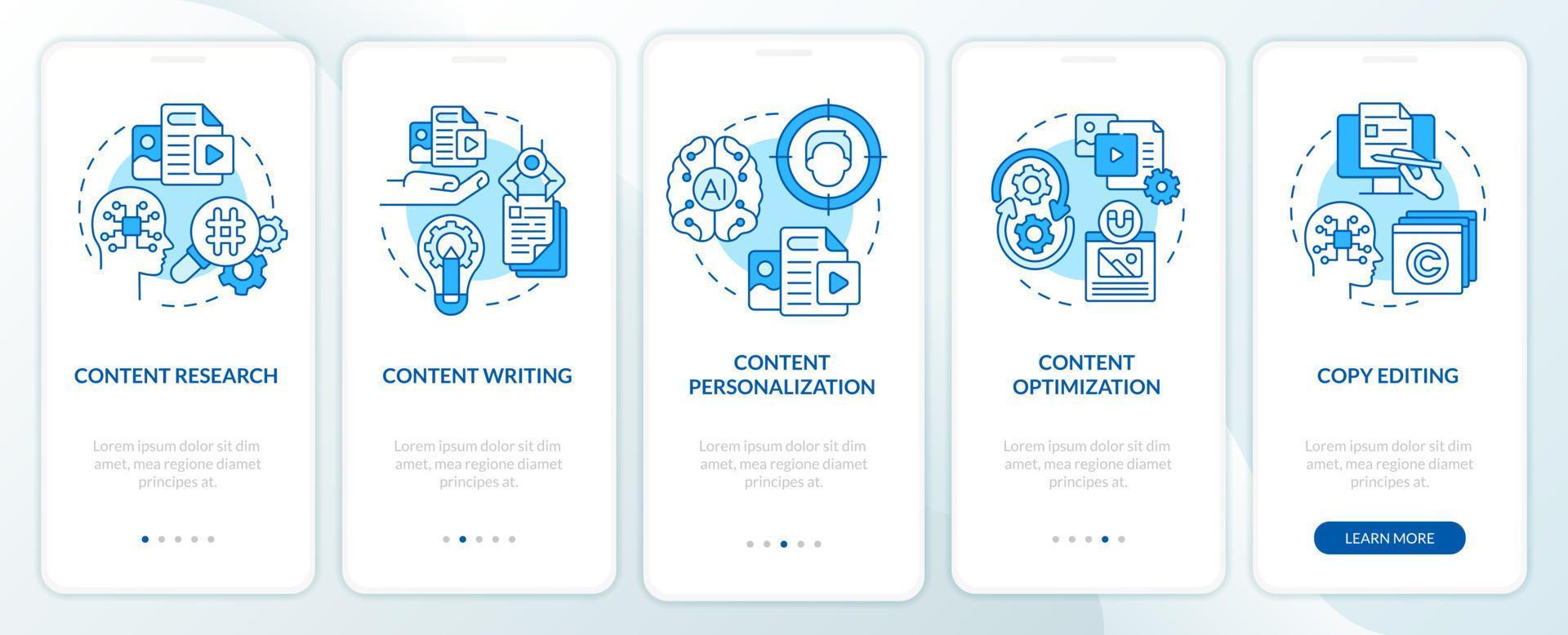 AI in content blue onboarding mobile app screen. Business online walkthrough 5 steps editable graphic instructions with linear concepts. UI, UX, GUI template Pro Vector