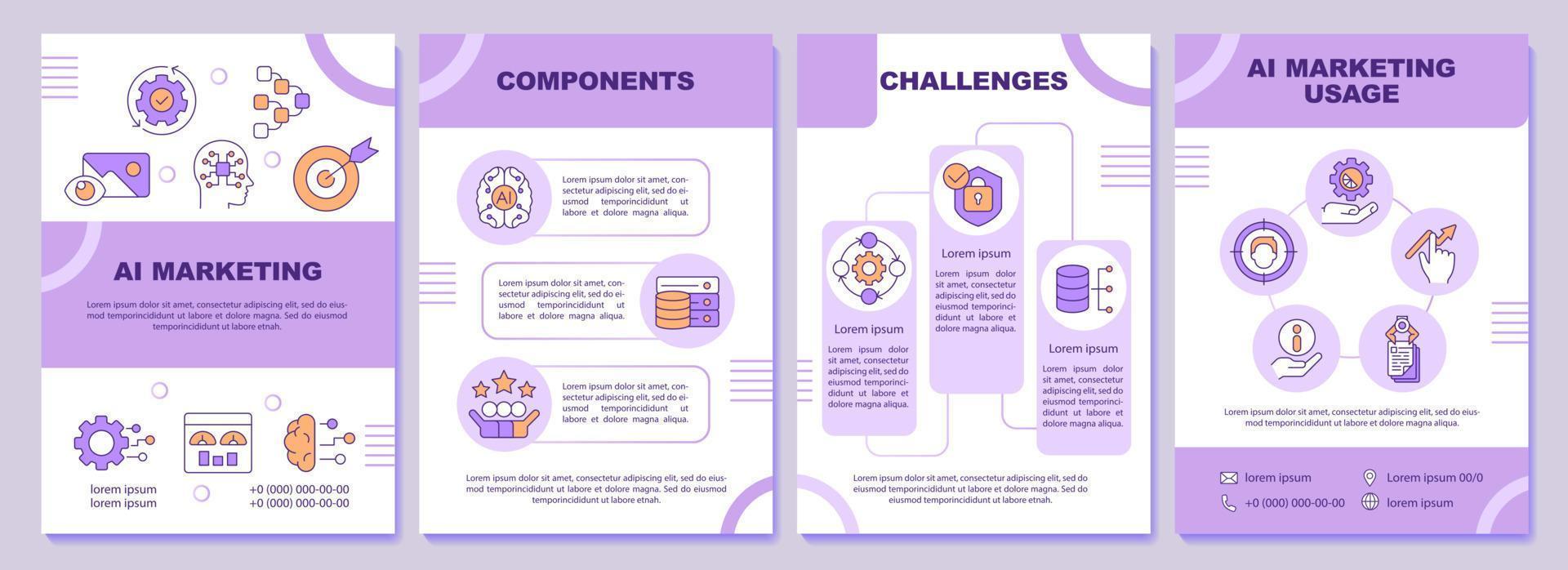 AI integration in marketing purple brochure template. Business. Leaflet design with linear icons. Editable 4 vector layouts for presentation, annual reports Pro Vector