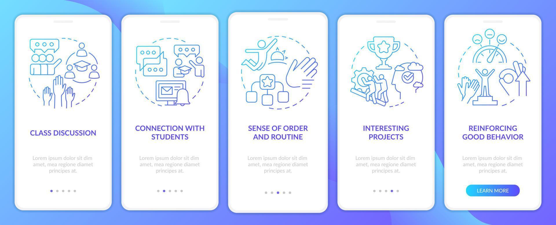 Healthy learning environament blue gradient onboarding mobile app screen. Walkthrough 5 steps graphic instructions with linear concepts. UI, UX, GUI template Pro Vector