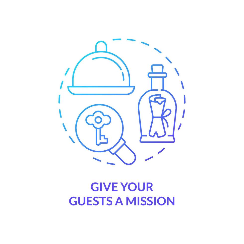 Give guests mission blue gradient concept icon. Unusual dining experience abstract idea thin line illustration. Puzzle solving activity. Isolated outline drawing Pro Vector and Pro SVG