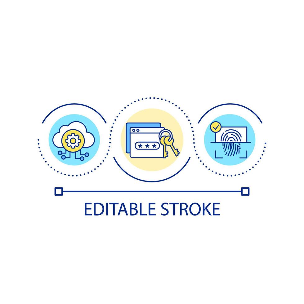 Cyber security loop concept icon. Personal privacy protection abstract idea thin line illustration. Storing sensitive information in cloud. Isolated outline drawing. Editable stroke Pro Vector