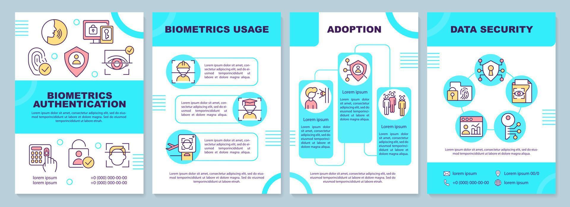 Biometrics blue brochure template. Identification technology. Leaflet design with linear icons. Editable 4 vector layouts for presentation, annual reports Pro Vector