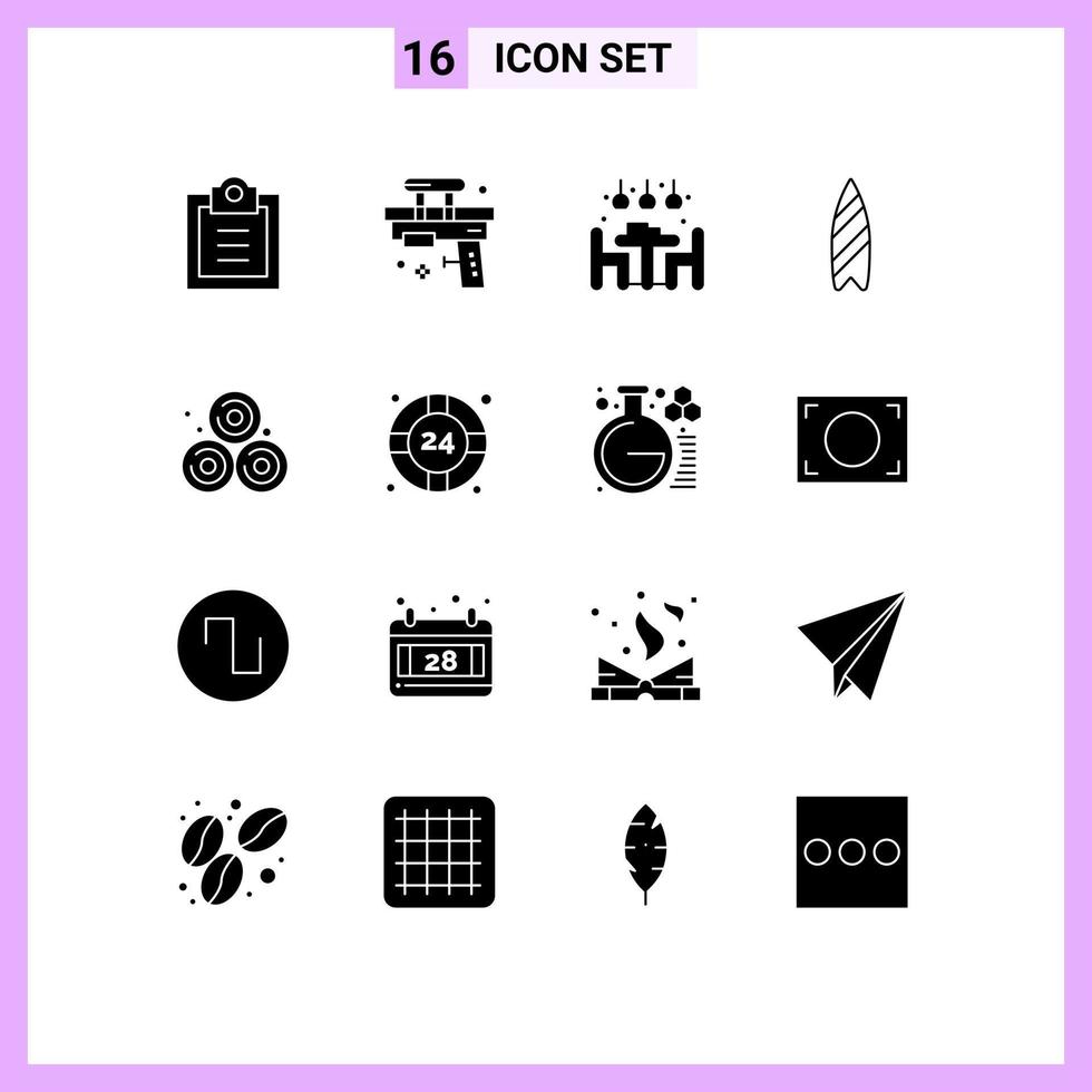 16 Universal Solid Glyphs Set for Web and Mobile Applications straw surfing home surfboard recreation Editable Vector Design Elements Free Vector