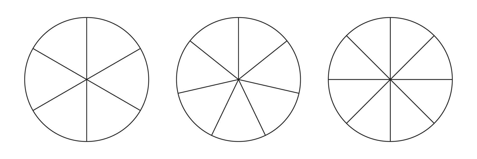 Pie chart, diagram set, six, seven and eight sections or steps. Circle icons for infographic, presentation, web design, user interface. Simple business chart. Pro Vector