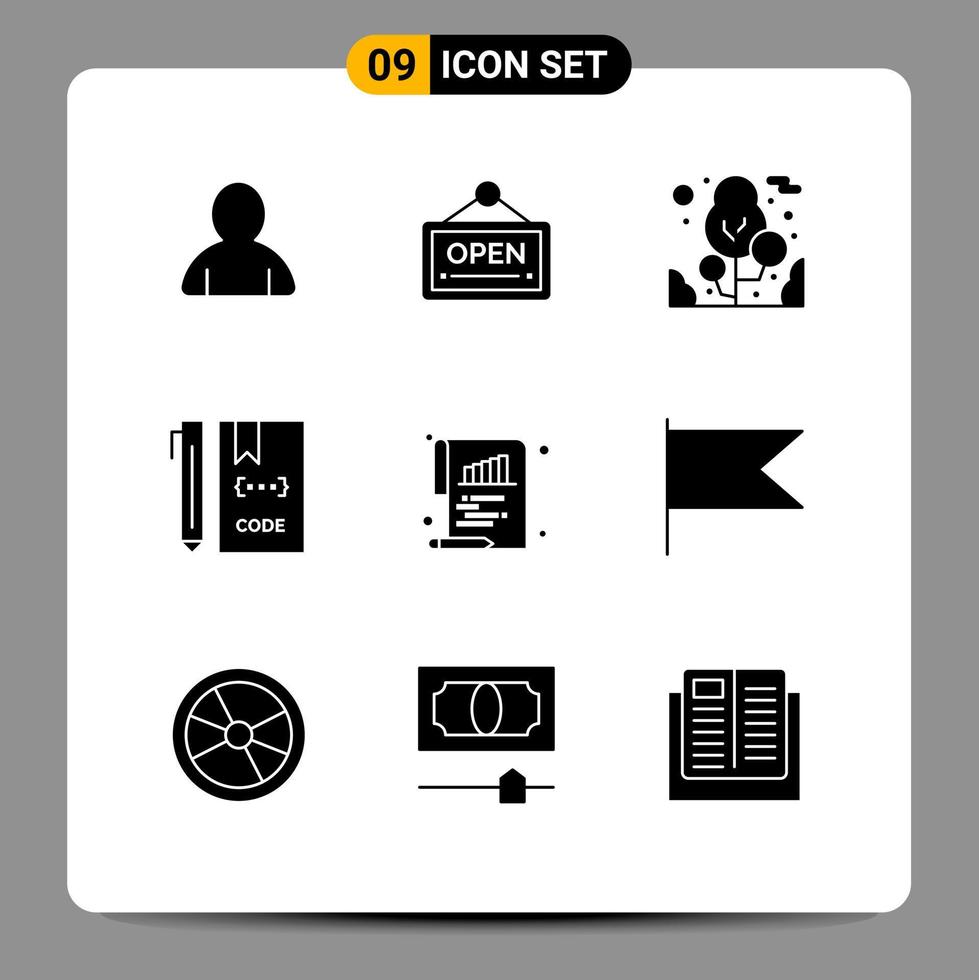 Set of 9 Vector Solid Glyphs on Grid for document bar tree file develop Editable Vector Design Elements