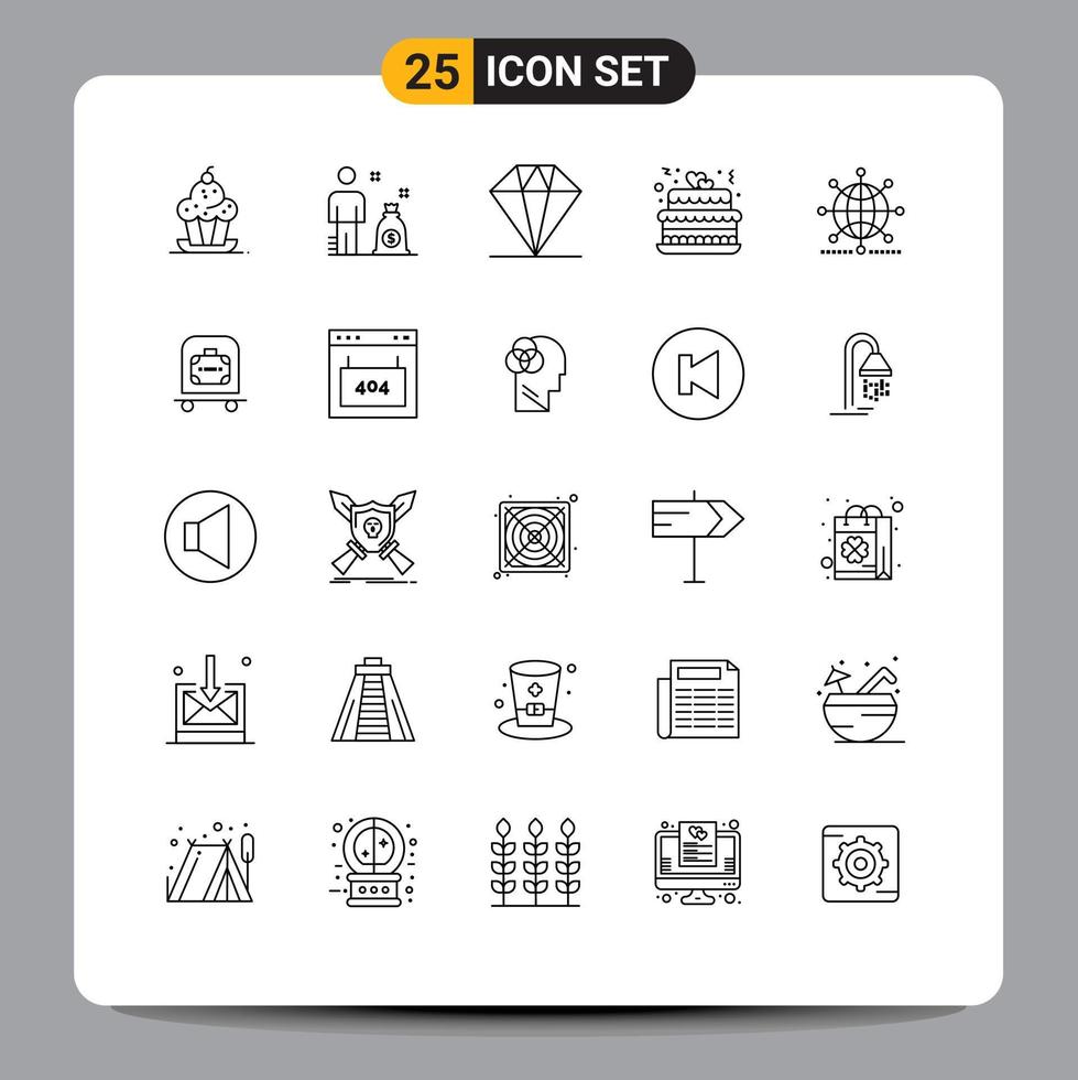 25 Line concept for Websites Mobile and Apps network globe diamond party love Editable Vector Design Elements