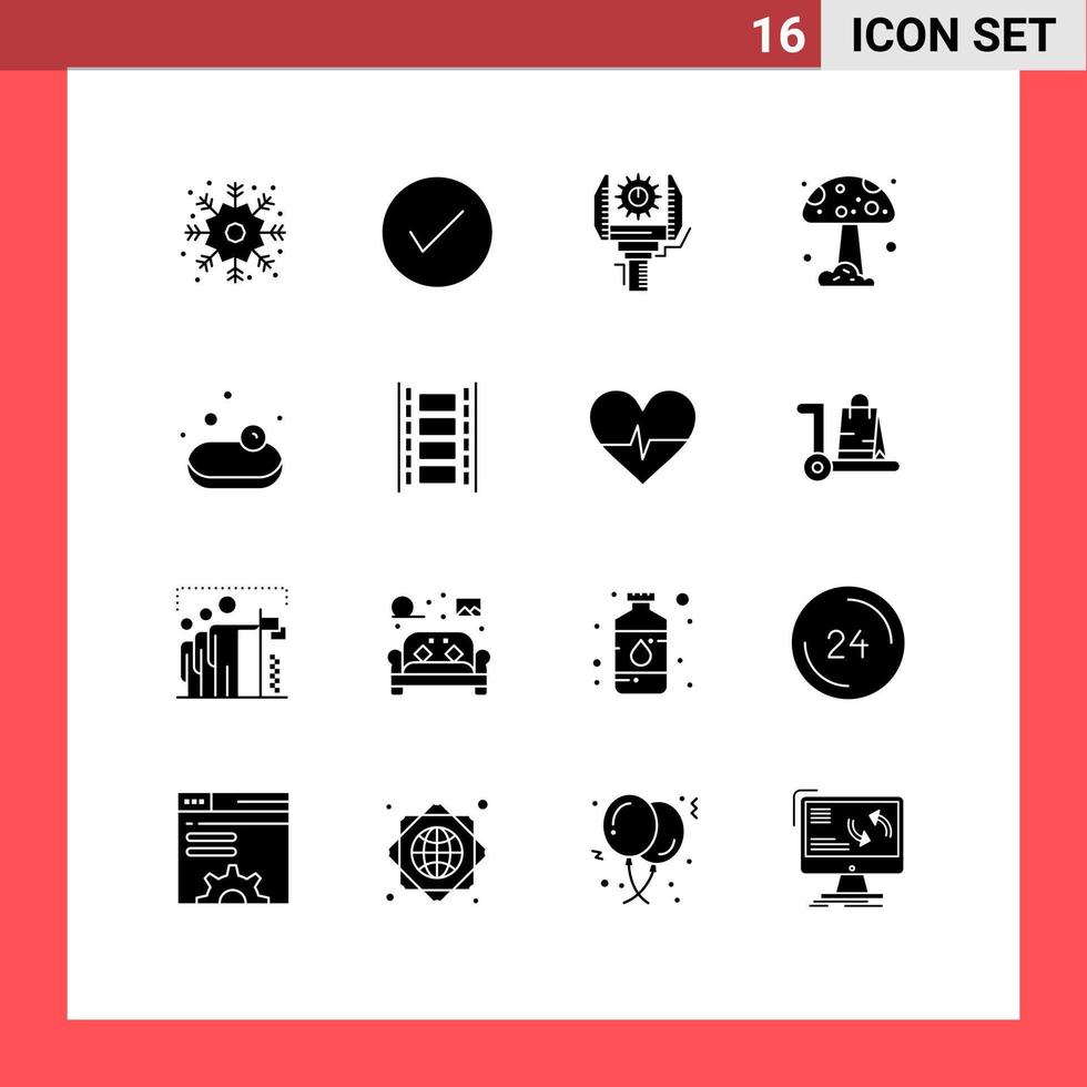 Pack of 16 Modern Solid Glyphs Signs and Symbols for Web Print Media such as shopping nature automation mushroom robotics Editable Vector Design Elements Free Vector