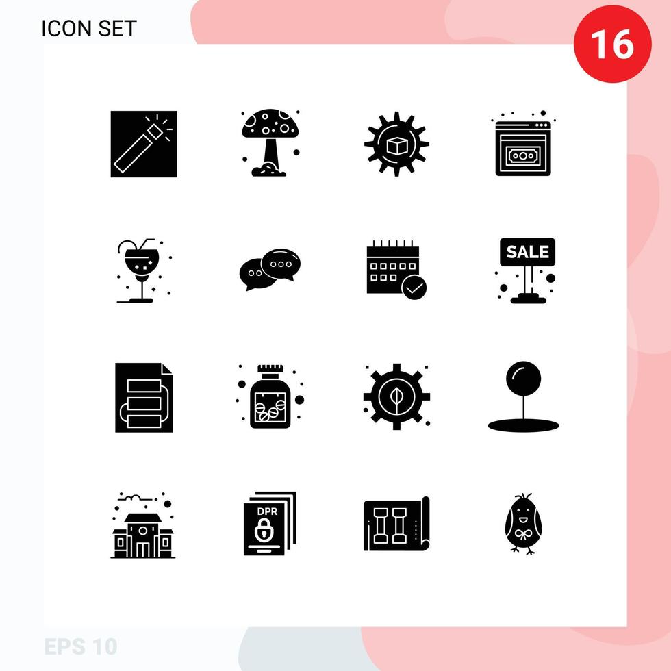 User Interface Pack of 16 Basic Solid Glyphs of ice drink data beverage entrepreneurship Editable Vector Design Elements Free Vector