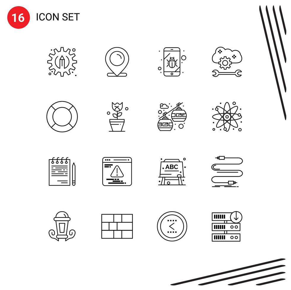 Pack of 16 Modern Outlines Signs and Symbols for Web Print Media such as essential cloud sync settings mobile cloud settings cloud preferences Editable Vector Design Elements Free Vector