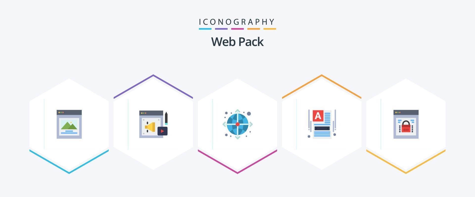 Web Pack 25 Flat icon pack including protected browser. information security. globe. web builder. making website vector