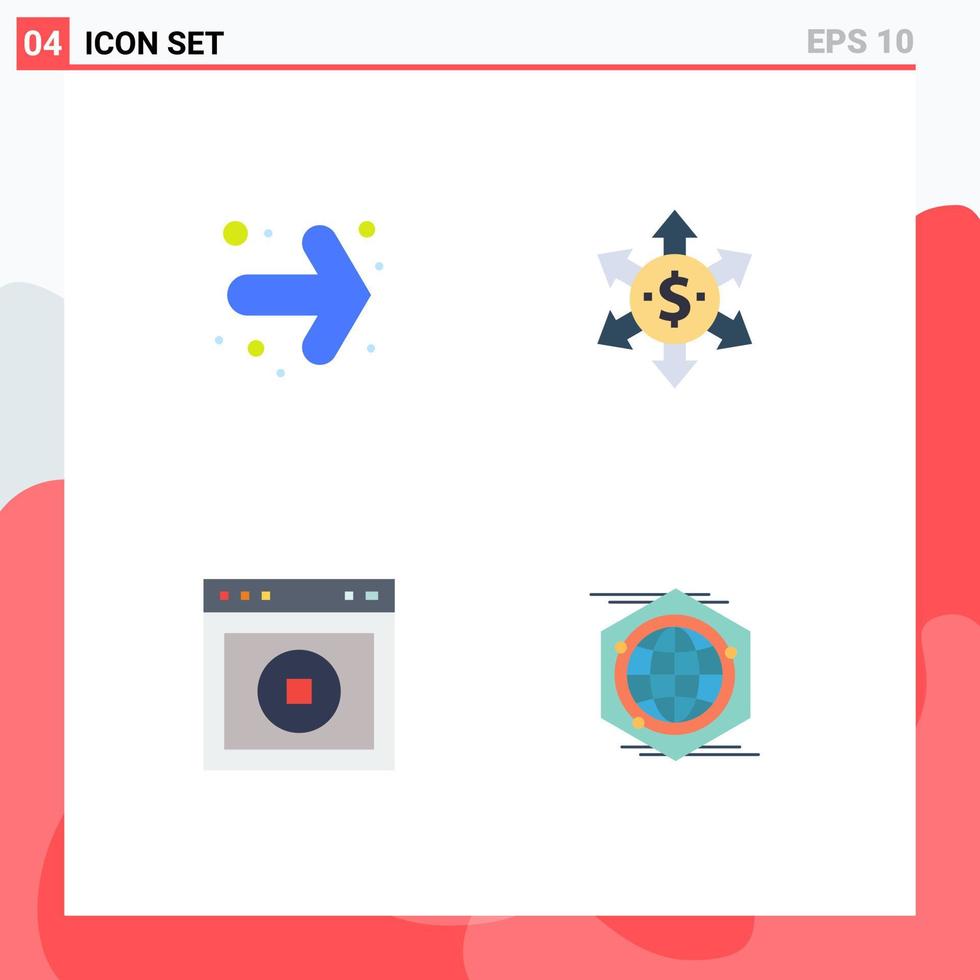 Mobile Interface Flat Icon Set of 4 Pictograms of arrow web dollar stop globe Editable Vector Design Elements