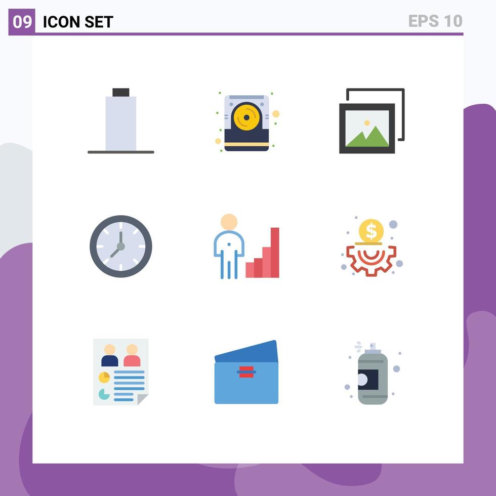 Set of 9 Modern UI Icons Symbols Signs for graph chart gallery analytics timer Editable Vector Design Elements