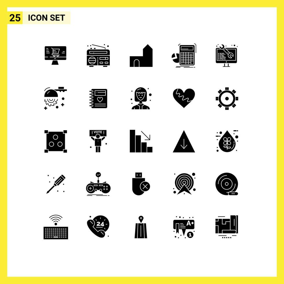 Group of 25 Modern Solid Glyphs Set for software graph castle tower progress calculation Editable Vector Design Elements Free Vector