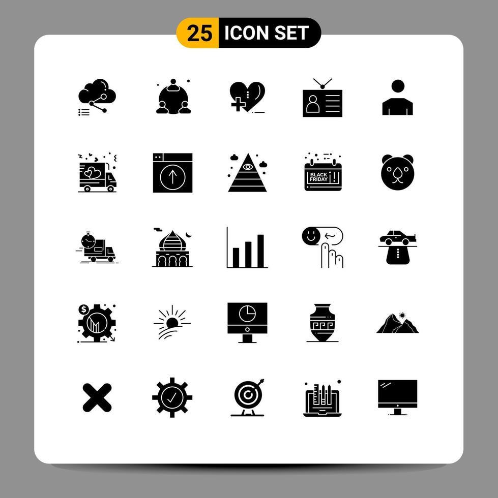 25 Universal Solid Glyphs Set for Web and Mobile Applications avatar retro television love output device ancient tv Editable Vector Design Elements Free Vector and Free SVG