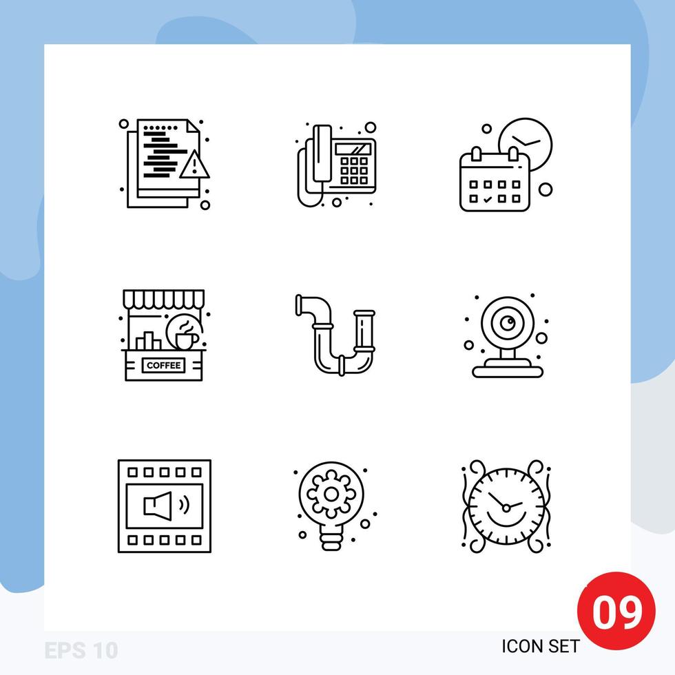 Modern Set of 9 Outlines and symbols such as counter cafe device bar time Editable Vector Design Elements Free Vector