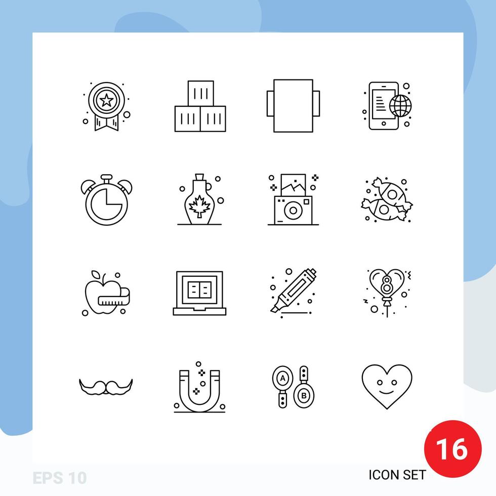 Outline Pack of 16 Universal Symbols of timer clock layout alarm global Editable Vector Design Elements