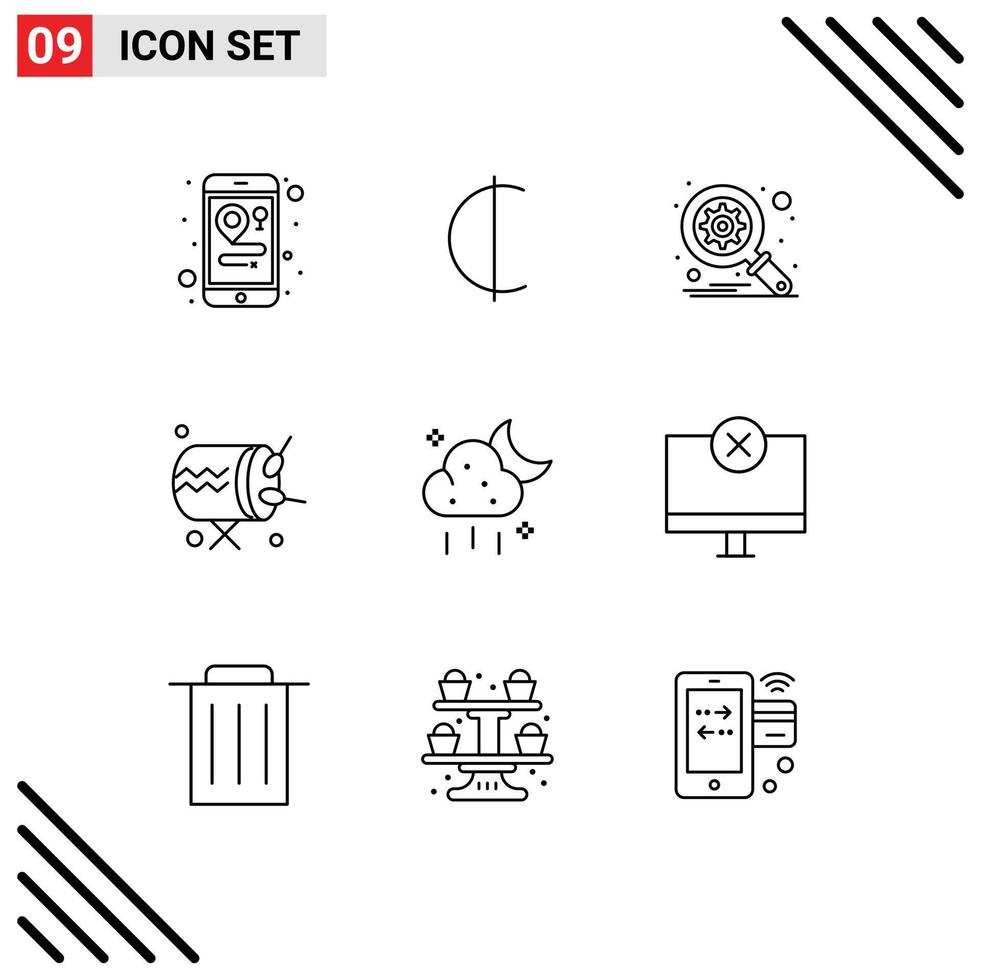 Group of 9 Outlines Signs and Symbols for computers ui search storage announcement Editable Vector Design Elements