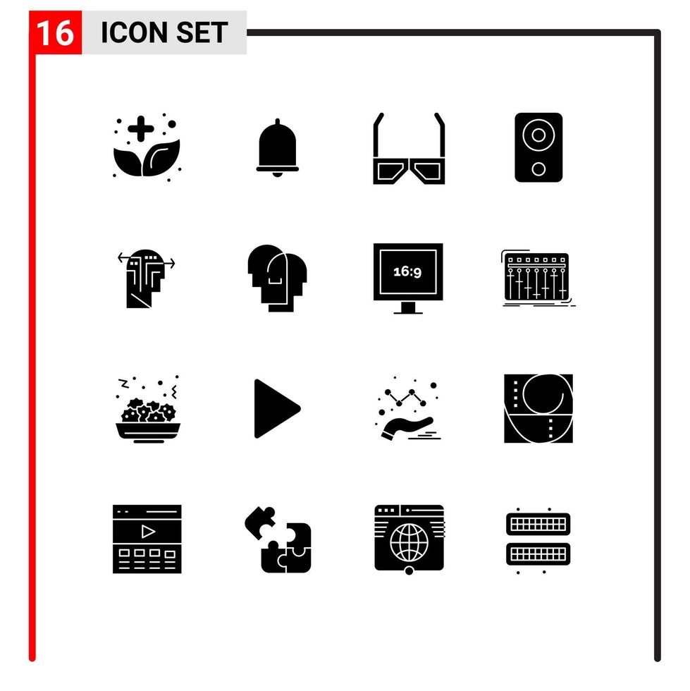 Pack of 16 Modern Solid Glyphs Signs and Symbols for Web Print Media such as hardware devices sound computers tv Editable Vector Design Elements