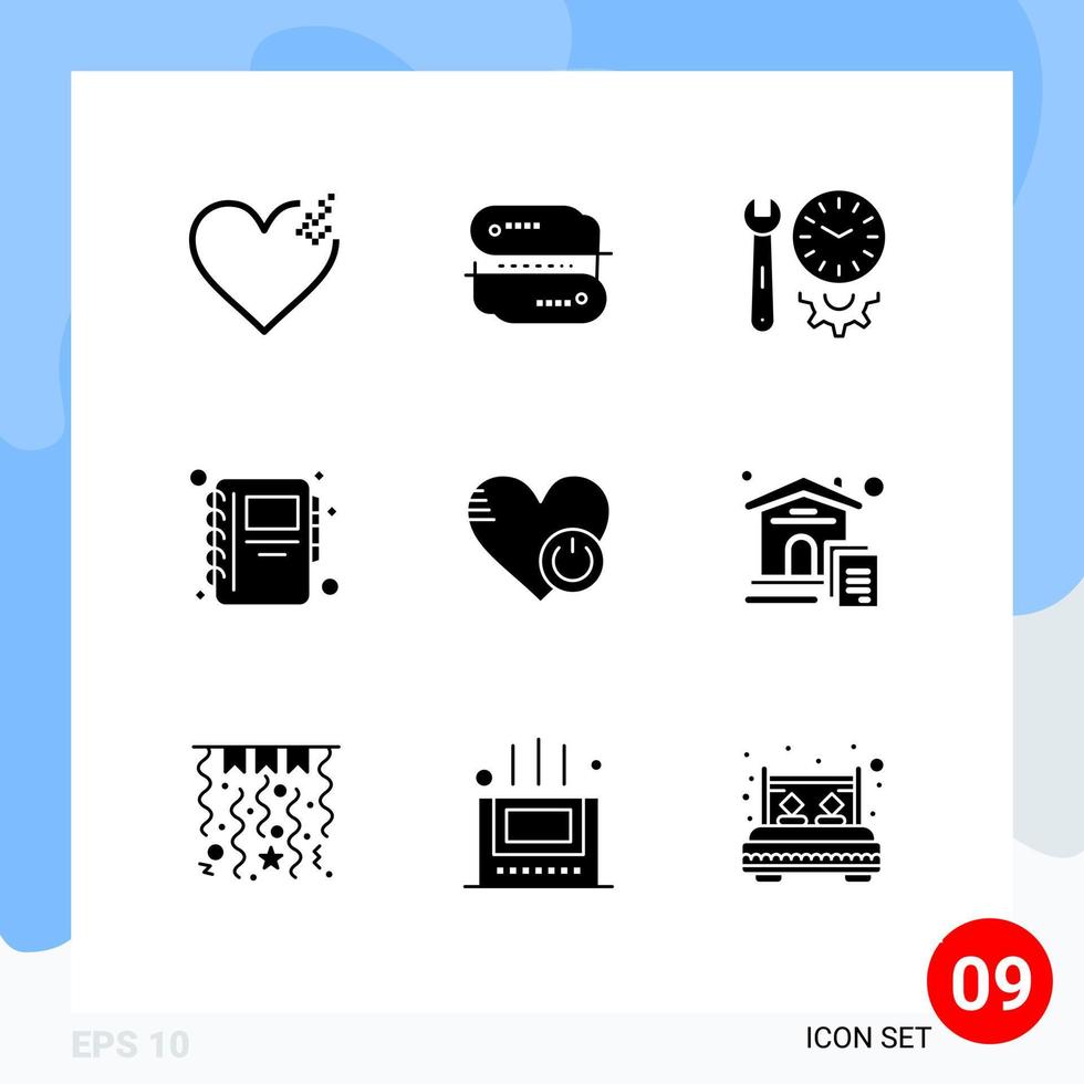 9 Solid Glyph concept for Websites Mobile and Apps switch shutdown options notepad education Editable Vector Design Elements Free Vector