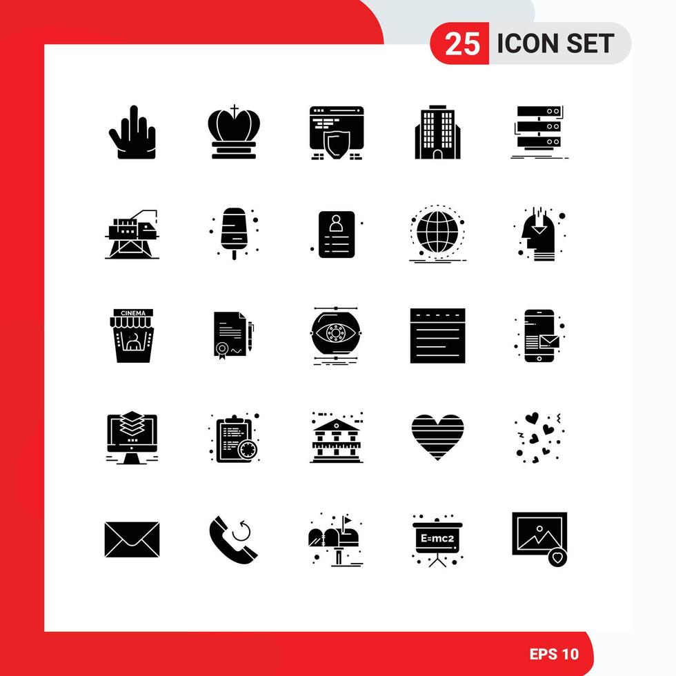 Mobile Interface Solid Glyph Set of 25 Pictograms of database storage seo server business Editable Vector Design Elements