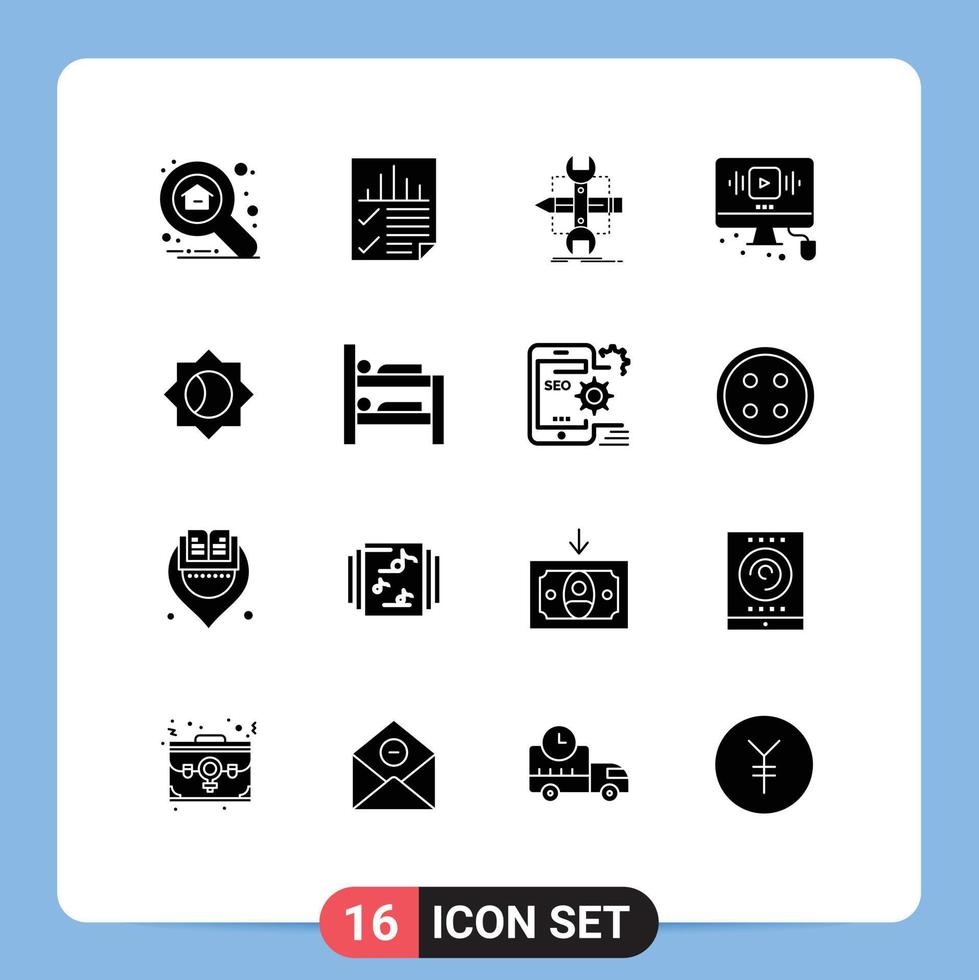 Editable Vector Line Pack of 16 Simple Solid Glyphs of web youtube seo video sketch Editable Vector Design Elements