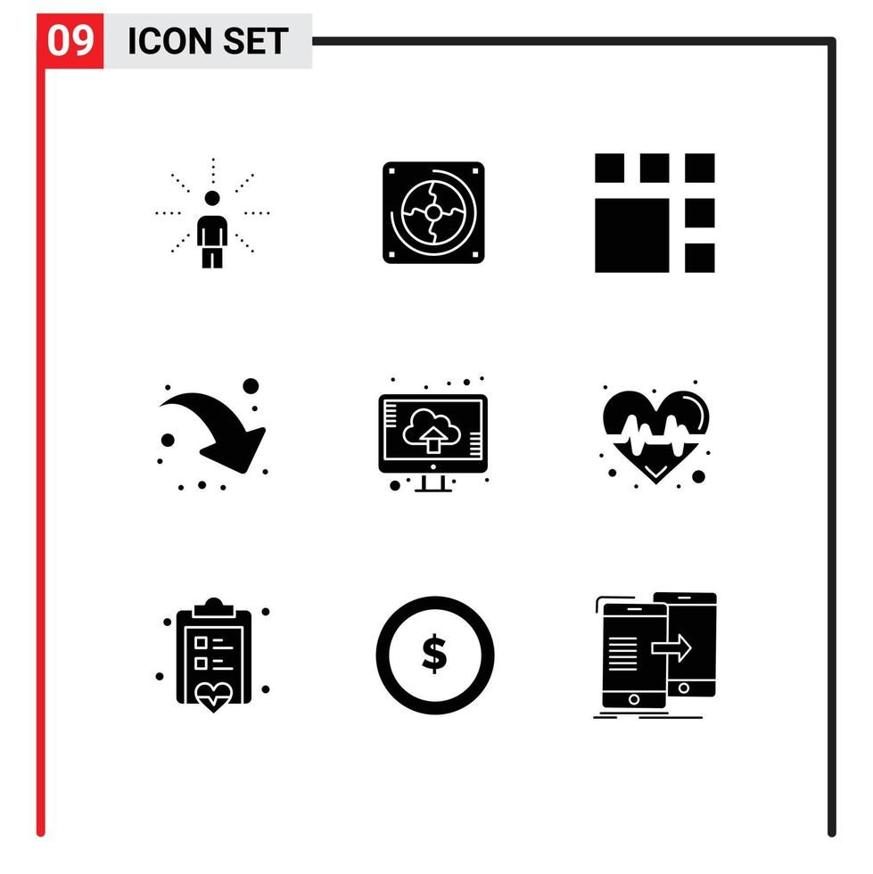 Set of 9 Modern UI Icons Symbols Signs for computer down right fan share layout Editable Vector Design Elements