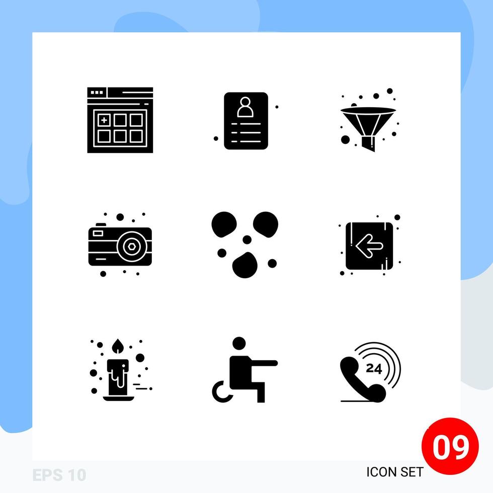 Set of 9 Modern UI Icons Symbols Signs for left arrow funnel weather hail Editable Vector Design Elements