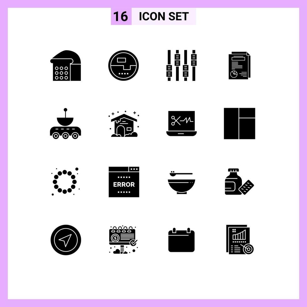 Set of 16 Vector Solid Glyphs on Grid for science car control presentation layout Editable Vector Design Elements